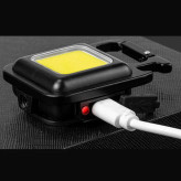 چراغ جیبی مگنت دار شارژی چندمنظوره COB چراغ جیبی مگنت دار چندمنظوره COB دربازکن دار، یک محصول چندکاره کوچک است که بهراحتی در جیب شما جا میشود و در هر جایی شما را همراهی میکند. چه در سفر و کمپینگ، چه در محل کار و هنگام تعمیرات، داخل منزل و کارگاه، در محیطهای باز و در هر جای دیگر که نیازمند روشنایی باشید این محصول به کمک شما میآید میتوانید آن را بهعنوان جاسوئیچی استفاده کنید یا به کیف و شلوارتان وصل کنید و یا میتوانید به کمک آهنربای پشت دستگاه به هر سطح فلزی آن را نصب کنید تا نور از زاویه دلخواه شما بتابد و دست شما هنگام کار باز باشد این چراغ جیبی دارای یکپایه کوچک نگه دارنده محکم است. همچنین این چراغ را میتوانید روی مونوپاد یا سهپایه ببندید. این گجت کاربردی از کیفیت ساخت بسیار خوبی برخوردار است و بدنه آن از فلز (آلیاژ آلومینیوم) ساخته شده است و ضدضربه، ضدرطوبت و ضدآب است (مقاومت در برابر آب با استاندارد IPX5 waterproof) چراغ جیبی مگنت دار چندمنظوره COB توسط یک دکمه روشن خاموش که در سمت چپ آن تعبیه شده قابلکنترل است و سه حالت نوری پر نور، کمنور و حالت چشمکزن (چراغ پلیسی) را به شما میدهد. این محصول شارژی است و از یک باطری داخلی ظرفیت بالا تغذیه میکند که با کابل USB تایپ C بهوسیله آداپتور یا پاوربانک قابلشارژ است.