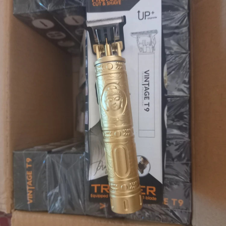 ماشین اصلاح Vintage T9 دارای بدنه ای تمام فلزی است که در برابر سایش مقاوم است، بادوام است و استفاده از آن آسان است، موها را کاملاً برای هر نوع حالت دهی تمیز می کند و برای اصلاح خشک و کوتاه کردن ایده آل است. این ماشین اصلاح یک ست اصلاح کننده حرفه ای بی سیم مردانه می باشد که دارای تیغه های تیتانیومی است که تیز، ضد آب و به راحتی جدا می شوند. برای برش صاف، تیغه های بدون شکاف و لبه های زیبا توصیه می شود. قدرت قوی پایدار و سر و صدای کم، کوتاه کردن موی صاف و یکنواخت با عمر طولانی از ویژگی های این ماشین اصلاح می باشد و به وسیله دکمه تعبیه شده در انتهای آن روشن میشود. در انتهای این ماشین اصلاح یک عدد باطری 18650 قابل شارژ تعبیه شده که با چرخاندن پیچ انتهایی آن میتوانید به راحتی باطری را بیرون آورده و به وسیله یک شارژر باطری که روی این ماشین اصلاح می باشد آن را شارژ کرده و دوباره استفاده کنید. زمان شارژ کردن این باطری 2 ساعت و زمان استفاده از آن نیز 2 ساعت می باشد. به همراه این ماشین اصلاح 4 عدد شانه با اندازه های 1.5 میلی متر، 2 میلی متر، 3 میلی مترو 4 میلی متر، یک عدد شارژر باطری، روغن، برس و دفترچه راهنما می باشد.بدنه این ماشین اصلاح از فلز بادوام با طرح های حکاکی شده دقیق ساخته شده است.تیغه های T شکل آن از جنس استنلس استیل دارای دندانه های تیز هستند که مو، ریش و سبیل را کوتاه می کنند. بدون نگرانی در مورد بریدگی های تصادفی از دستگاه با آرامش خیال استفاده کنید. ابعاد این ماشین اصلاح 15.5x4x2.5 سانتی متر است.